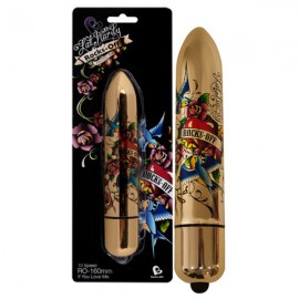 Dieser Rocks off Mini-Vibrator mit prachtvollem Tattoo-Design von Lal Hardy, einem der besten Tattoo-Künstler der USA, kann nicht nur mit seinem Aussehen punkten, sondern auch mit seinen Vibrationen: 3 Geschwindigkeiten und 7 Ryhthmen sorgen für atemberaubende Stimulationen Ihrer Klitoris! Ganz leicht und handlich per Knopfdruck. Einfach stark! Gesamtlänge ca. 16 cm, Einführtiefe ca. 13 cm, Ø 3,1 cm. Wasserfest. Material: ABS mit Metallicüberzug, phthalatfrei gemäß EU-Verordnung 1907/2006/EC. Inklusive Batterien.
