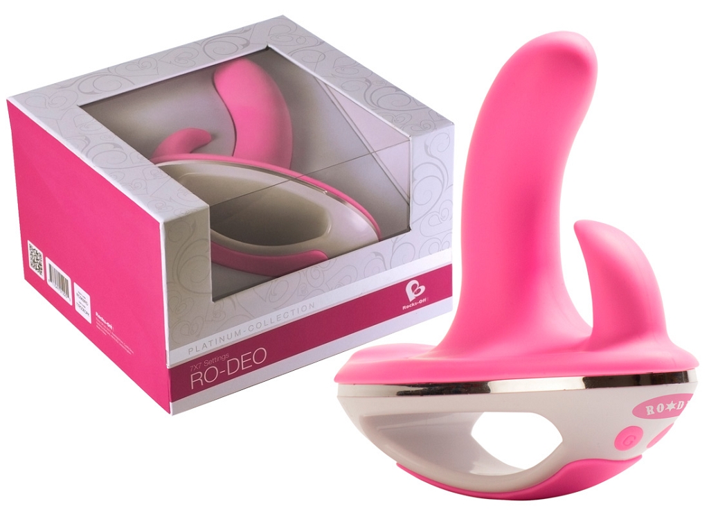 Starkes Design für die ganz große Lust!Gebogener Vibrator mit Klitorisreizer im unverwechselbaren Rock-Off-Design, das an einen Pferdesattel erinnertÂ… Mit zwei Motoren (1 im Klitorisreizarm und 1 im Vibrator) und handlichem Haltegriff. Die 7 Geschwindigkeiten und 7 unterschiedlichen Vibrationsprogramme sind per Knopfdruck getrennt voneinander regelbar. Rosa/Weiß/Silber. Vibrator ca. 11 cm lang, Ø 3,5 cm. Bedienteil ca. 16 cm lang, 5 cm hoch und 9 cm breit.Material: Silikon, ABS, phthalatfrei gemäß EU-Verordnung 1907/2006/EC.Wiederauf
