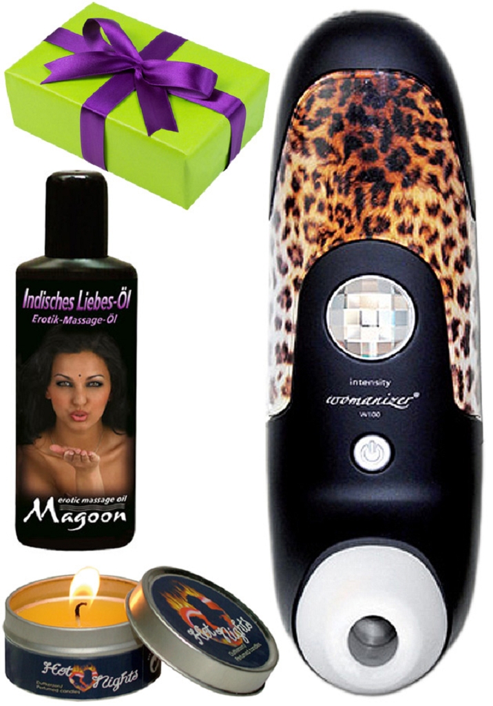 Das tolle Womanizer Geschenkset für alle Kurzentschlossenen. Mit Womanizer in schwarz + Massageöl + Duftkerze + Geschenkverpackung.