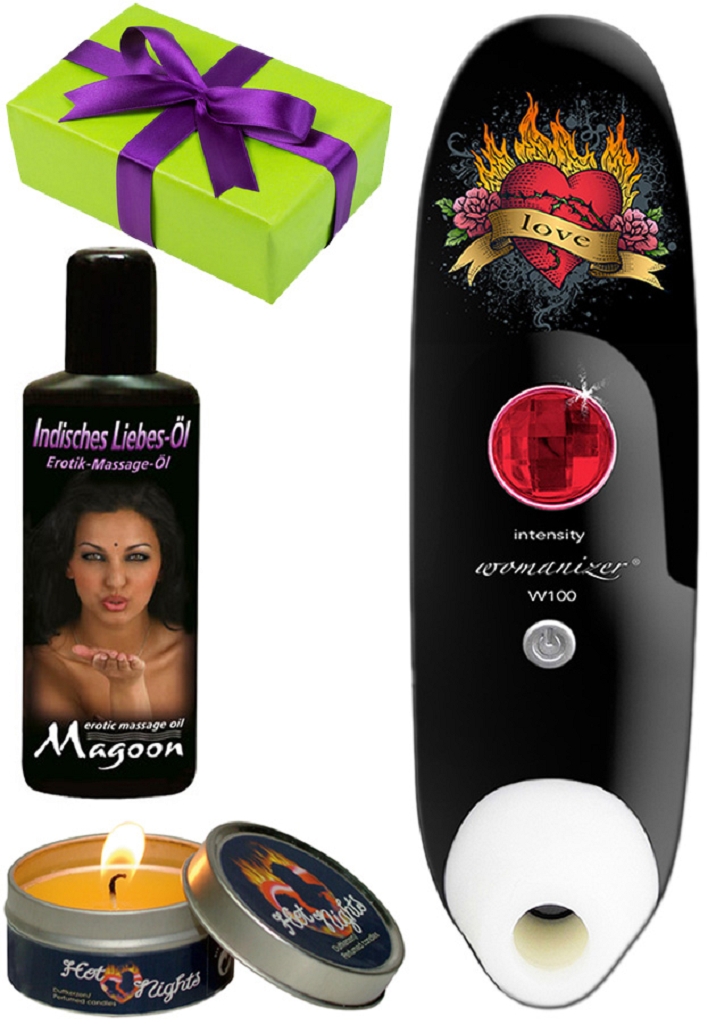 Das tolle Womanizer Geschenkset für alle Kurzentschlossenen. Mit Womanizer in der beliebten Tattoo Edition + Massageöl + Duftkerze + Geschenkverpackung.