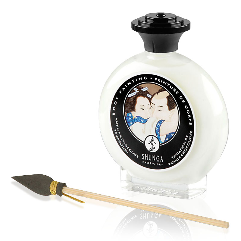 Die Fantasie anregende, weiße Körperfarbe mit verführerischem Vanille-Schokoladen-Aroma bietet mit einem feinen Moosgummi-Pinsel vielseitige kreative Möglichkeiten des Liebesspiels. Malen Sie sich gegenseitige Liebesbotschaften, Gedichte oder andere zarte Liebesgeständnisse auf den Körper und lassen Sie sich vom Geschmack der süßen Pinselstriche verwöhnen.
