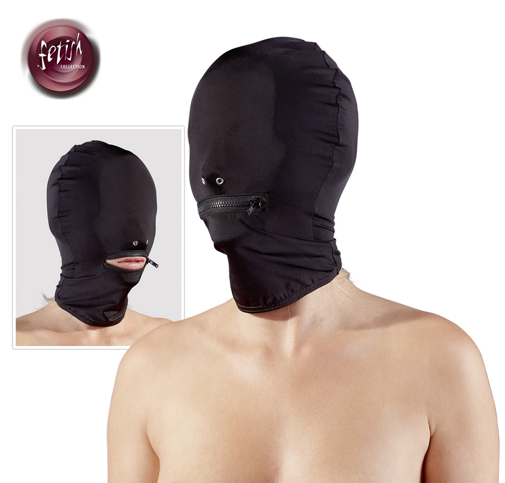 Sprrechen oder nicht sprechen ist hier die Frage!Eng anliegende Kopfmaske mit Reißverschluss, der quer über den Mund geht. Kleine Ösen für die Nasenlöcher. Schwarz.Weiche, leicht transparente Mikrofaser: 95% Polyester, 5% Elasthan.