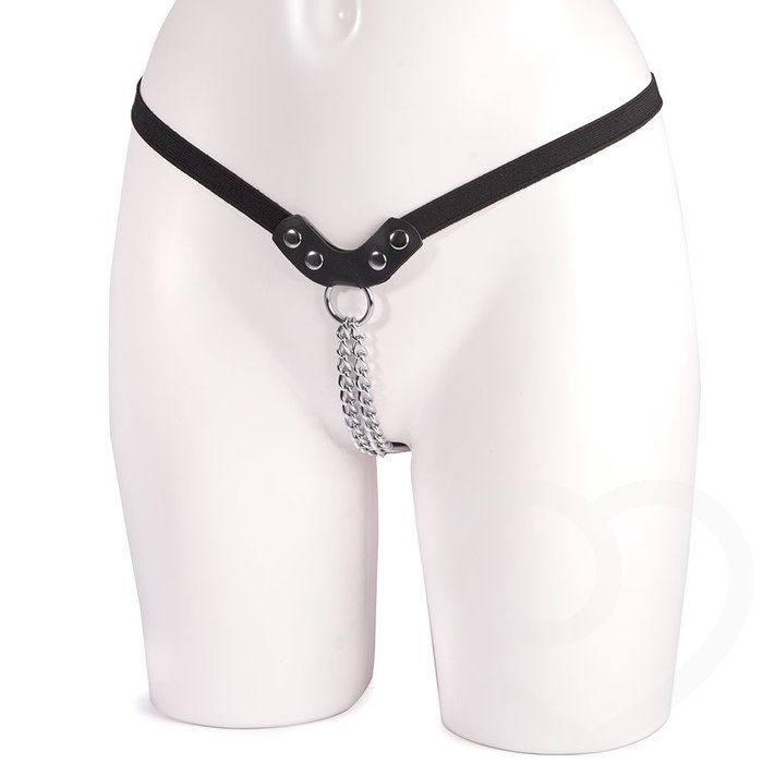 Keuschheitsstring für Frauen bestehend aus einer Kette und dehnbaren Riemen