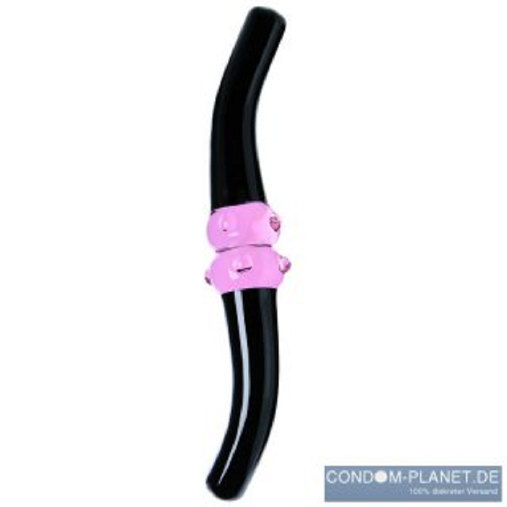 Doppelt hält besser!Dieses edle schwarze Glasdildo-XXL Zwillingspaar ist mehr als ein dezentes Schmuckstück für Ihren Nachttisch. Beim vergnüglichen Einsatz verwöhnt es Sie gleich im Doppelpack. Die lang geschwungenen Enden sind schön glatt und kitzeln lustvoll Ihren G-Punkt.Lassen Sie auch unbedingt die rosa Noppen-Ringe auf sich wirken. Länge: 30 cm Ø 6cm Bruchsicheres Glas Sehr hochwertige Geschenkverpackung mit Magnetverschluss In jeder Packung liegt ein Stoff-Aufbewahrungsbeutel beiÂ