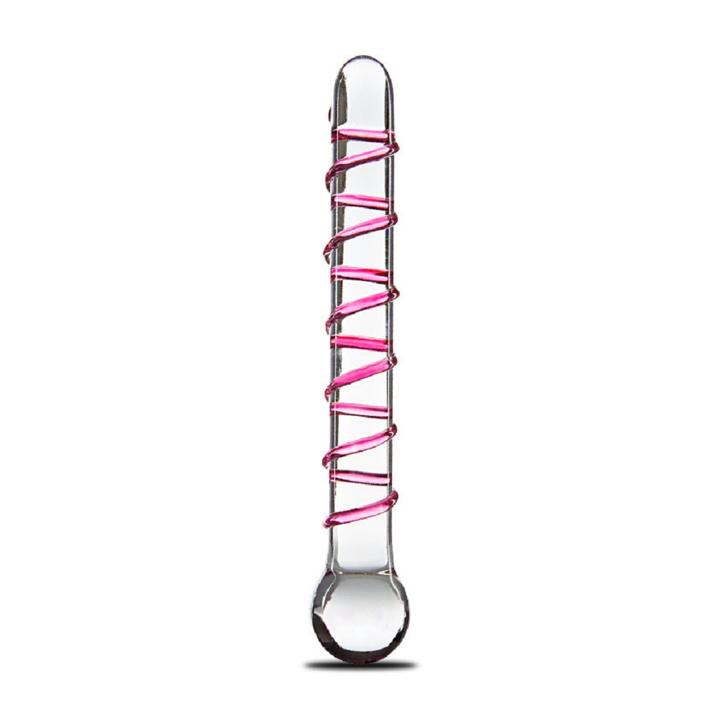 Glasdildo mit Spiraleaus bruchsicherem Hartglasmundgeblasenes Unikatglatte, sehr gleitfreudige Oberflächekann Kalt oder Warm genossen werdenLänge: 23 cmDurchmesser Ø : 2,5 - 2,8 cmMaterial: bruchsicheres GlasFarbe: Transparent mit pinkfarbener Spirale