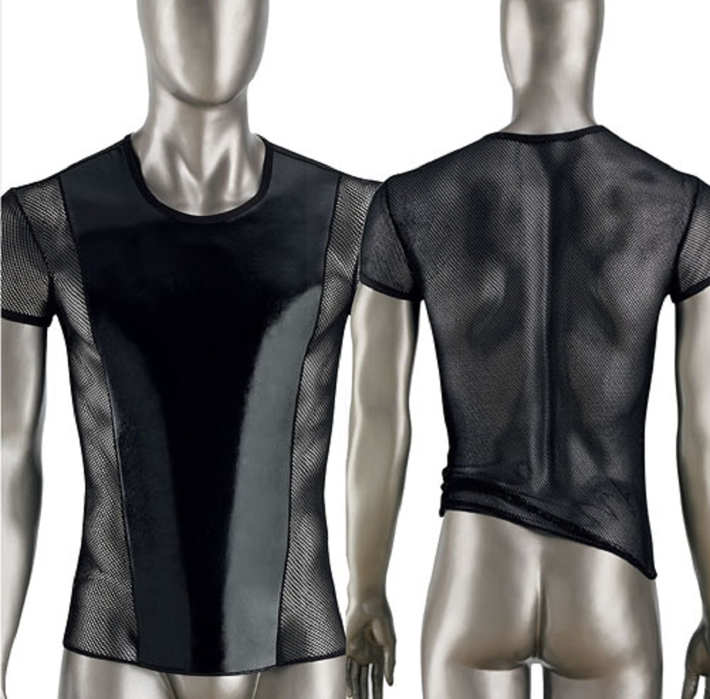 Eros Veneziani Herren Lack-Netz-Shirt in schwarz