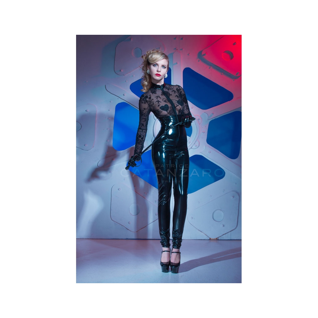 Lack Catsuit Pam mit Netzoberteil
