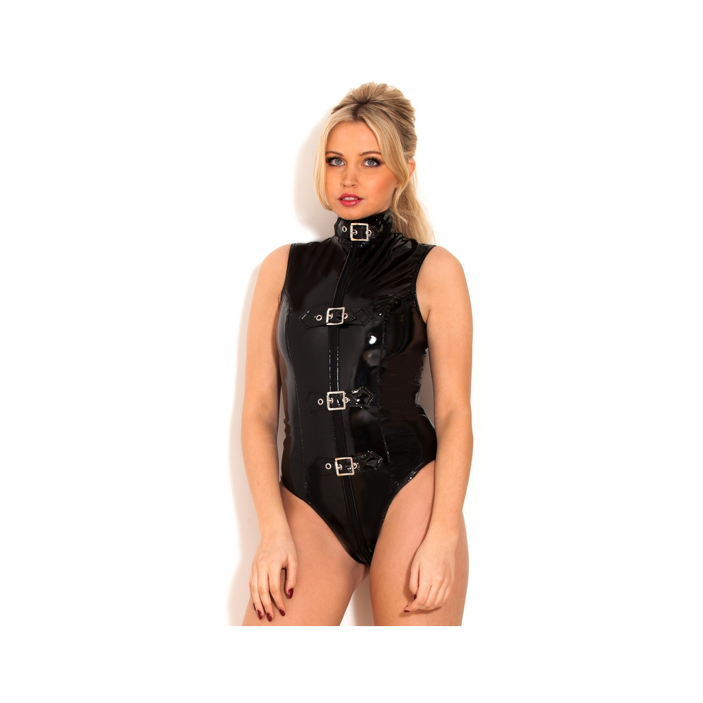 Lackbody ZipnBuckle kurzärmelig mit Frontreißverschluss,tollem Kragen und vielen schönen Schnallen. Verführen Sie Ihren Liebsten doch mal mit heißen Catsuits und Bodys aus Lack. Es ist in den Größen XS bis XXL erhältlich. Material: 58% Polyester, 42% PolyamidGrößen: XS - XXLFrontreißverschlussFarbe: Schwarz Maßtabelle - Damen: GrößeXSS