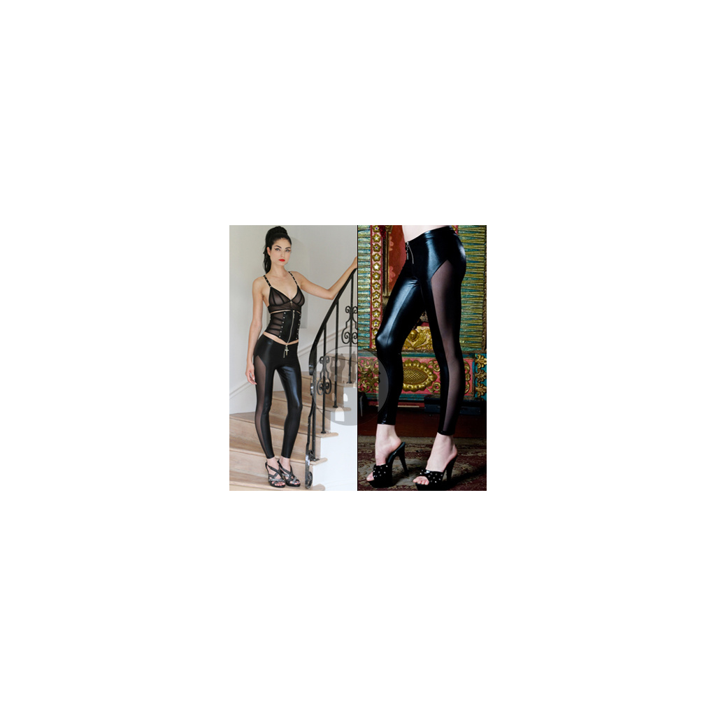 Heiße Leggings im angesagten Wetlook, für den extravaganten Auftrit sorgt der transparente Netzeinsatz an den Beinen.Material: 97% Polyester, 3% ElasthanMaterial Netzeinsatz: 100% NylonGrößen: S, M und LMaßtabelle