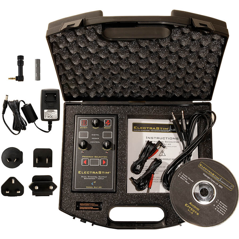 ElectraStimSensaVox ist ein leistungsstarker Stimulator für Elektro-Sex , der entweder durch Netz- oder Batteriestrom gesteuert werden kann. Das Gerät verfügt über eine breite Palette von Funktionen, die es zu entdecken gilt. Die Stimulation kann sogar synchron zu mitgeliefertem Audio erfolgen, unter Verwendung des mitgelieferten Mikrofons oder Kabels für Audio-Eingang. Funktionsmerkmale Stimulator Netz- oder batteriebetrieben 2 wirklich isolierte Stimulationskanäle (vor...