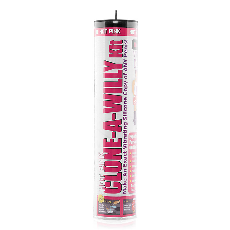 Mit diesem Clone-A-Willy-Set erstellen Sie eine naturgetreue Kopie Ihres Besten Freundes.. Das Ergebnis lässt sich sehen und versetzt die Liebste garantiert in Staunen. Schenken sie ihr einen Abdruck als Valentins-Geschenk oder zum Geburtstag. So wird die Liebste immer ein Stück ihres Geliebten bei sich haben. Das sechsteilige Set beinhaltet einen Beutel Abguss-Pulver, zwei Döschen hautfreundliches Silikon, eins transparent und das andere pink, einen Rührstab, ein kleines Thermometer und einen Vibrator mit einstufiger Vibration. Das Pulver wird mit etwas warmem Wasser zu einer gelartigen Masse angerührt und in die Röhre gefüllt. Diese kann vorher zurechtgeschnitten werden, falls das nötig ist. Der Penis wird nun im erigierten Zustand für circa zwei Minuten in das Gel gepresst. Sobald das Gel gehärtet ist, kann in die Form das Silikon eingegossen werden und muss einen Tag aushärten. Anschließend kann das pinke, persönliche Präsent weiter verschenkt werden. Die Form kann außerdem mit anderen Materialien wie zum Beispiel geschmolzener Schokolade, Gieß-Seife oder Kerzenwachs nochmals verwendet werden.