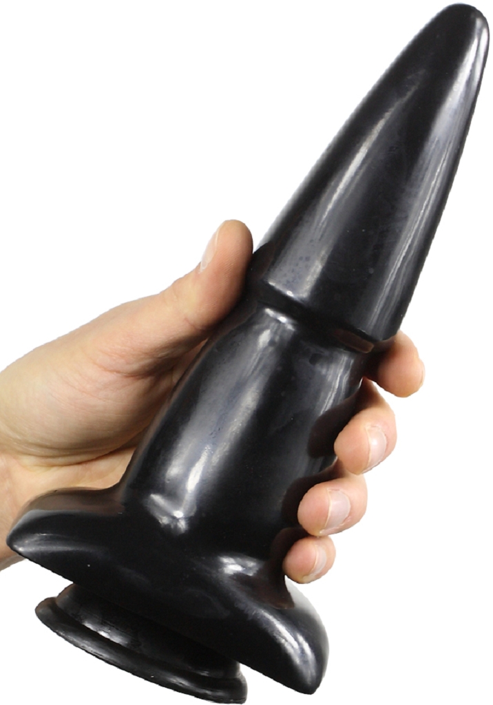 Spitz zulaufender Analplug aus 100% PVC mit zuverlässigem Saugfuß in schwarz, Maße: 23 x 6 cm