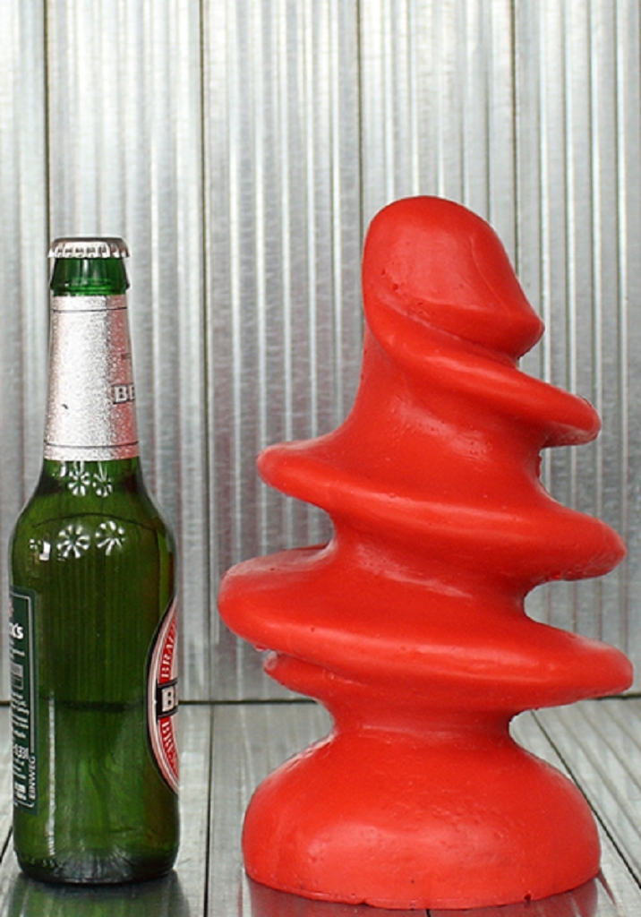 Roter Buttplug in Form einer riesigen Schraube mit Standfuß, Länge 23 cm, Durchmesser 8 - 14 cm