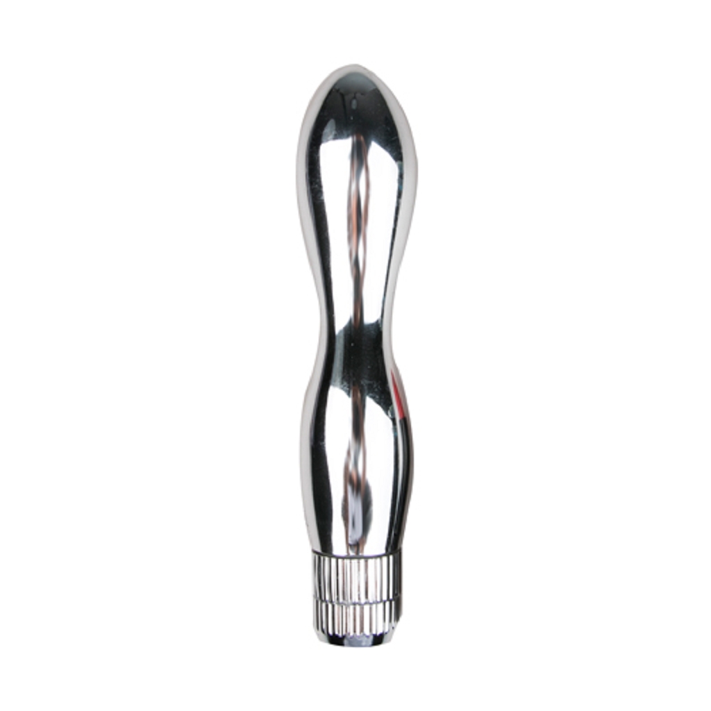 Taillierter Vibrator mit dicker Spitze. Mit stufenlos regelbarer Vibration. Silberfarben. Spezifikationen:Baterie - exclusiefBaterie Typ - 2x AAA BatterijenFarbe - ZilverMaterial - ABS (Plastik)Länge - 14.50Diameter - 3.10